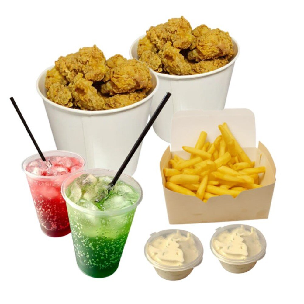 12+12 крылышек на выбор, 1 картошка фри, 2 чесночных соуса, 2 лимонада на выбор